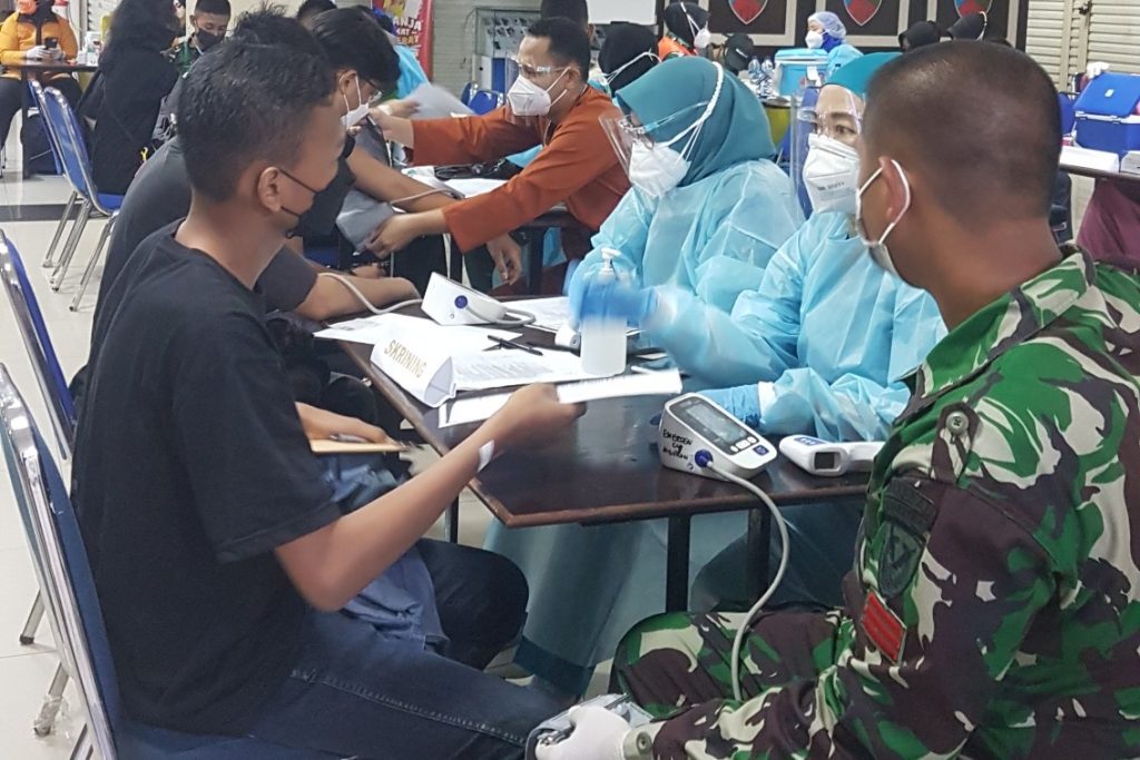 Sebelumnya kegiatan ini telah di lakukan di Lanud Halim Perdanakusuma kemudian kami di tugaskan untuk megadakan sentra vaksin di wilayah sekitar Halim yabg sebelumya telah di lakukan juga sentra vaksin di Wisma Haji Pondok Gede. Saat ini Prioritas warga Bekasi meskipun ada juga warga DKI Jakarta yang tinggal di Halim bisa juga ikut bergabung, namun untuk hari ini kami ditugaskan mengvaksinasi khusus warga Bekasi saja.