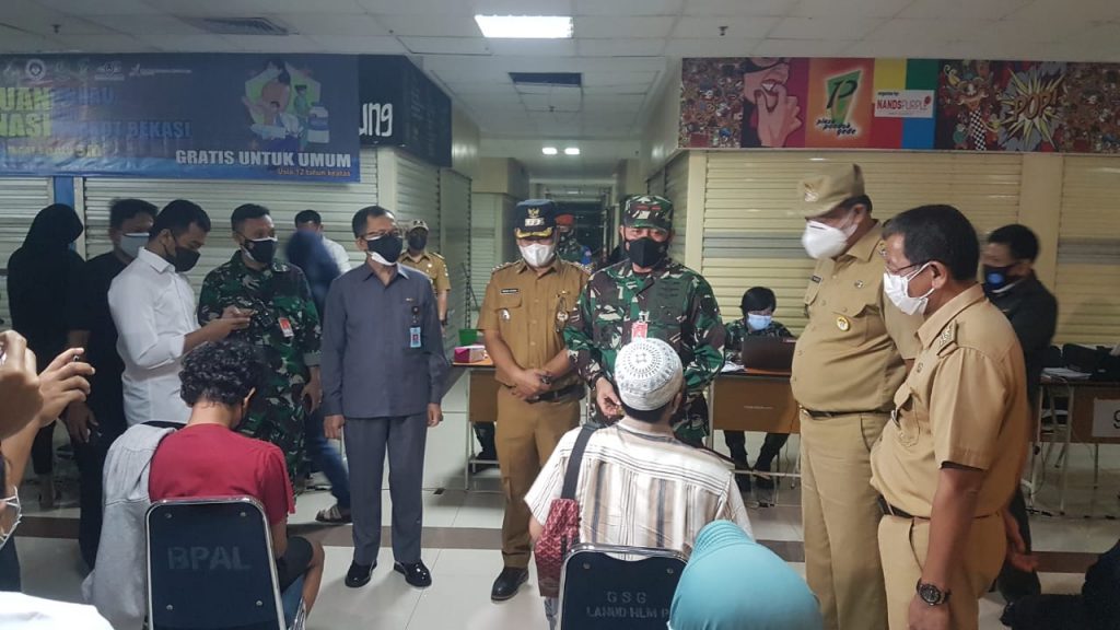 Jawaposnews.id– Jakarta, 26 Juli 2021, TNI AU. Pen Halim. Danlanud Halim Perdanakusuma Marsma TNI Bambang Gunarto, S.T., M.M., M.Sc., meninjau Lokasi kegiatan Vaksinasi di Mall Pondok Gede.