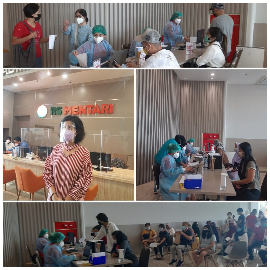 Sebelumnya RS Mentari sudah sering melakukan acara Vaksinasi, tapi untuk hari ini dalam rangka hari kemerdekaan 17 Agustus 2021 tepatnya hari kemerdekaan yang ke-76. Acara Vaksinasi ini dilakukan secara serentak oleh Dinas Kesehatan wilayah Tangerang dengan target sasaran 17845, tapi untuk RS Mentari sendiri 370 Orang dengan menggunakan Vaksin jenis Moderna. Ujarnya. Kegiatan Vaksinasi ini dalam rangka percepatan Vaksinasi di wilayah seluruh Indonesia, khususnya wilayah kabupaten Tangerang. Untuk acara Vaksinasi hari ini kita mulai pukul 09.00 – 14.00 wib, untuk masing-masing orang kita bagi per jam, tentunya dengan tetap menggunakan protokol kesehatan secara tertib, jelasnya. Peserta Vaksinasi di RS Mentari ini untuk umum, dengan syarat warga yang belum pernah di Vaksin, dengan mengisi link pendaftaran. Harapannya kegiatan Vaksinasi hari ini bisa berjalan dengan lancar, dan semua peserta yang datang berhasil di Vaksin setelah melalui screening pemeriksaan dokter. Sebelum dilakukan vaksinasi, setiap peserta akan dilakukan edukasi tentang manfaat vaksin dan keluhan pasca vaksinasi, kami juga menyediakan nomor khusus kepada peserta Vaksinasi yang gagal di vaksinasi karena beberapa hal “. Pungkasnya. (JPN/Alf)