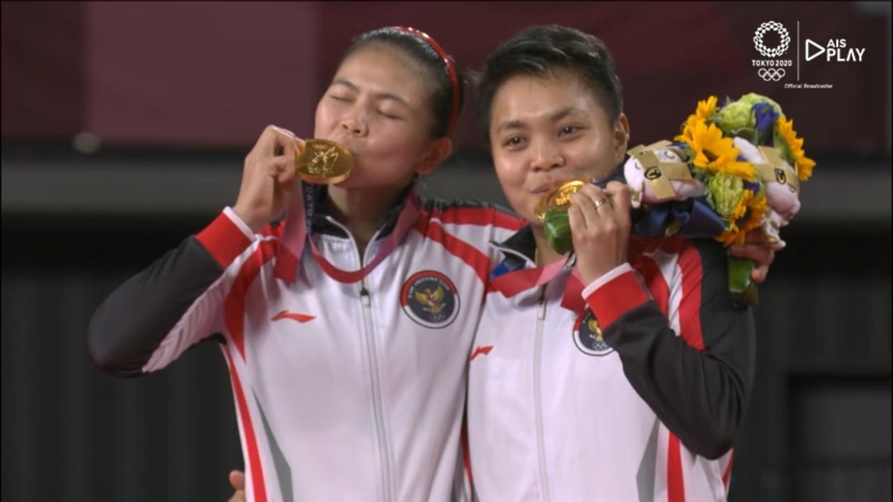 Jawaposnews.id. Japan – Musashino Forest Plaza, 2 Agustus 2021. Ganda Putri Bulu Tangkis Indonesia berhasil meraih emas pertama untuk Indonesia dengan skor 21-13 21-15
