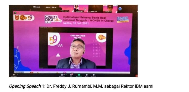 Dikatakan Rektor, Webinar kali ini mengangkat tema Women in Charge mengingat pentingnya untuk membicarakan peran perempuan dalam dunia usaha. IBM asmi juga sangat mengapresiasi peran perempuan, dan IBM asmi memiliki konsentrasi Kepemimpinan Perempuan pada Magister Management di S2 IBM asmi.