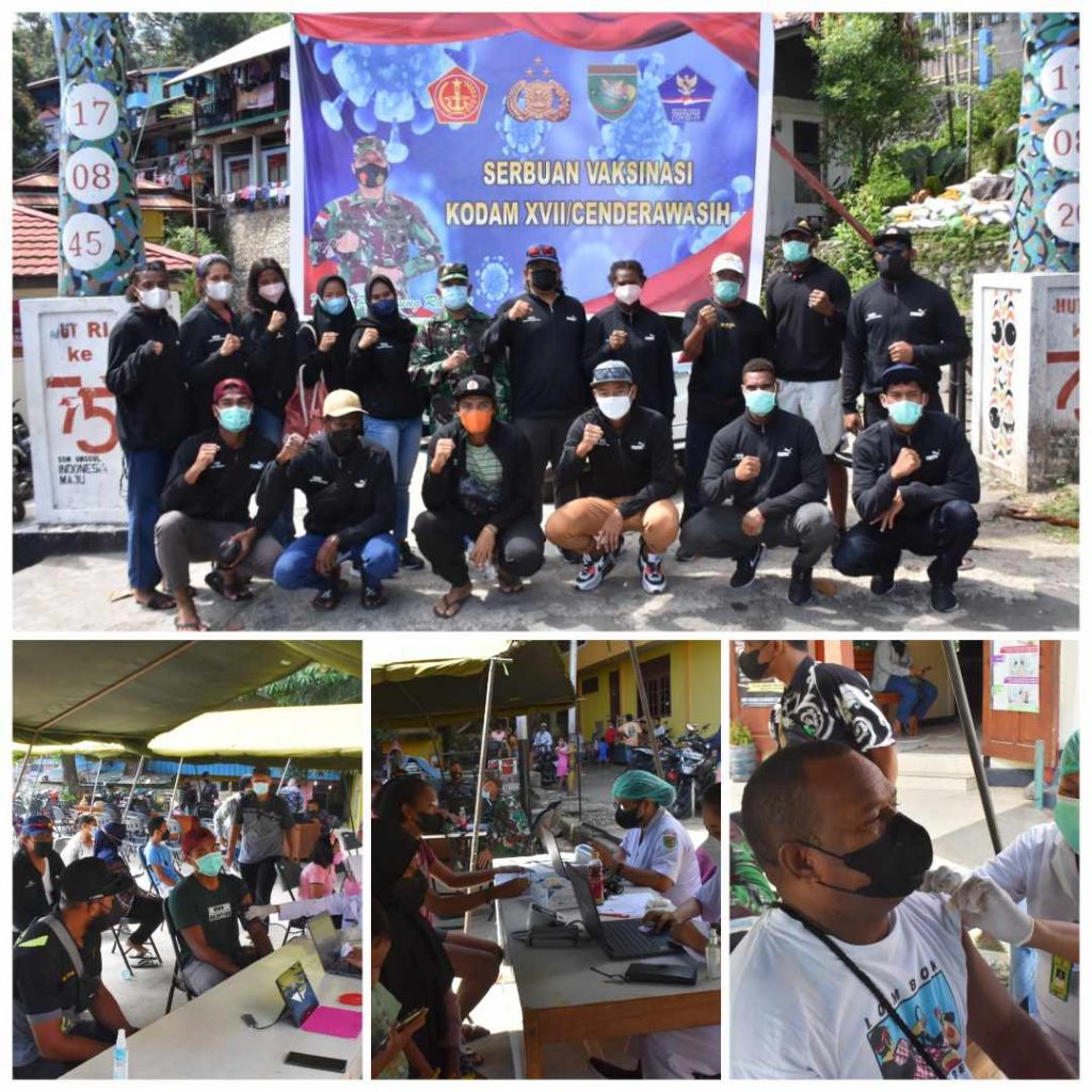 Kodam XVII/Cenderawasih gelar serbuan Vaksinasi Covid-19 di berbagai daerah. Hal ini menjadi harapan besar untuk mengakhiri pandemi Covid-19 di Papua, kegiatan vaksinasi kali bertempat di Kelurahan Numbay Jayapura Selatan, Sabtu (11/9/2021).