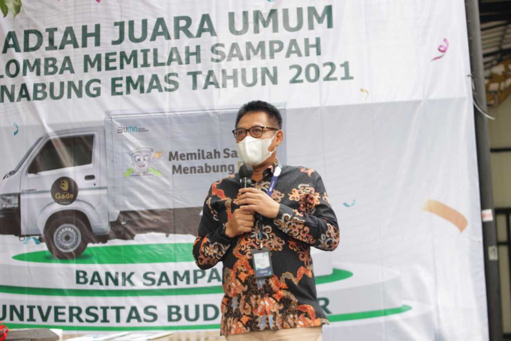 lomba yang bertema “Memilah Sampah Menabung Emas”. Lomba tersebut dilaksanakan pada 3 Juli – 24 Juli 2021 yang lalu diikuti 70 Bank Sampah Binaan Pegadaian di seluruh Indonesia. Universitas BUDI LUHUR menerima 3 penghargaan sekaligus. Acara penerimaan hadiah berlangsung pada Rabu 23 September 2021 di halaman Universitas BUDI LUHUR. Hakim Setiawan selaku Pemimpin Wilayah Kanwil IX Jakarta PT. Pengadaian Persero sebagai Pihak Penyelengara mengucapkan banyak terimakasih atas inisiasi lomba ini karena lomba ini merupakan lomba yang sanggat bermanfaat bagi masyarakat tentunya dan juga Universitas BUDI LUHUR karena punya misi yaitu Peduli pada Pelestarian Lingkungan dan juga sejalan dengan Masyarakat. Topiknya cocok dengan visi & misi Universtas Budi Luhur sanggat Bersemanggat untuk ikut dan aktif, dengan lomba ini dengan dukungan PT. Pengadaain Persero hal ini bisa terealisasi dan merupakan salah satu dari kegiatan yang sudah kita rintis cukup lama sekitar 3 tahun lebih karena PT. Pengadaian Persero sanggat konsen dengan kegiatan seperti ini, ujarnya.