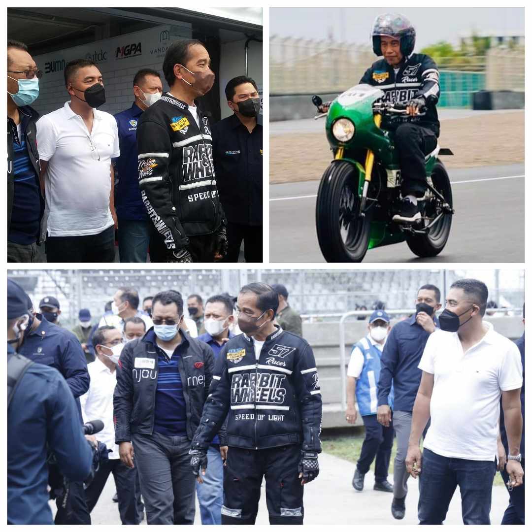 Sebelum meresmikan sirkuit, Presiden Jokowi, Gubernur NTB, Menteri PUPR, Menteri BUMN, Kapolda NTB, Danrem 162/WB, Dirut ITDC bersama pembalap IATC dari Indonesia menjajal lintasan balapan. (Alf)
