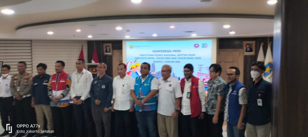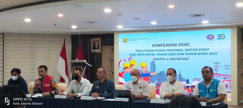 – 1 Januari 2023: Daya Mampu Pasok (DMP)= 44.271,95 MW, Beban Puncak (BP)= 31.212,45 MW, Cadangan Daya Sistem (Cad)= 13.0950,50 MW (41,84%). Sektor Geologi Selama periode tanggal 19 Desember 2022 s.d 4 Januari 2023, terjadi kejadian kebencanaan Geologi antara lain: 4 Gunungapi berstatus Siaga (Anak Krakatau, Merapi, Ili Lewotolok, Semeru) dan 17 gunungapi berstatus Waspada (Awu, Banda Api, Bromo, Dempo, Dukono, Gamalama, Ibu, Ile Werung, Karangetang, Kerinci, Lokon, Marapi, Raung, Rinjani, Sangeangapi, Sinabung, Soputan).