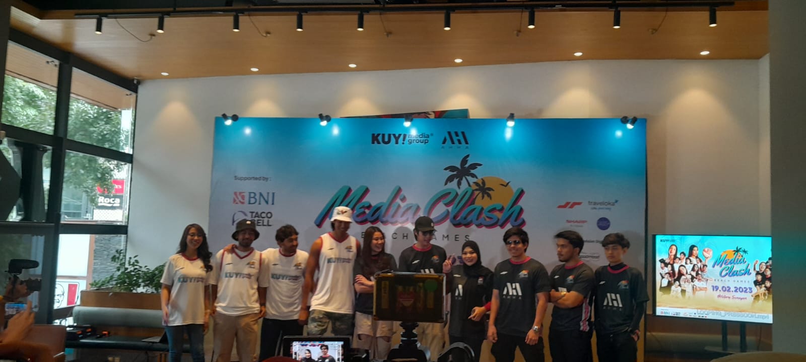 JP News.idJakarta, 14 Februari 2023 — Sukses dengan /P event pertamanya, KUY Media Group memperoleh banyak tanggapan positif dari berbagai kalangan atas terselenggaranya acara Media Clash. Memadukan rangkaian pertandingan olahraga sportif yang dilengkapi dengan entertainment performance, KUY Media Group menuai permintaan tinggi untuk dapat diselenggarakan kembaili. “Euforia dan antusiasme masyarakat terhadap Media Clash yang pertama menjadi semangat bagi kami untuk terus menghadirkan keseruan-keseruan di masa mendatang. Jika di Media Clash pertama kami berkolaborasi dengan RANS Entertainment, Media Clash 2.0 kami akan akan berkolaborasi dengan AHHA untuk menghadirkan kompetisi sportainment yang jauh lebih menarik lagi,” ujar Edo Wicaksono, CEO KUY Media Group. Sederet nama seperti Atta Halilintar, Aurel Hermansyah, hingga Fuji akan bersiap mewakili AHHA untuk berhadapan dengan tim KUY dalam rangkaian olahraga pada gelaran Media Clash kali ini. “Kami optimistis menang. Apa pun pertandingan olahraganya, kami yakin tim AHHA pasti menang melawan KUY,” kata Atta Halilintar dalam konferensi pers (14/2/23) di KFC Naughty by Nature, Senopati. Setelah menyuguhkan olahraga basket, dodgeball, dan bentengan pada Media Clash volume pertama, gelaran Media Clash 2.0 kali ini menghadirkan olahraga baru yang lebih segar, yaitu voli pantai dan sepak bola pantai tanpa melupakan olahraga tradisional Indonesia yang kembali dihadirkan, bentengan, dalam balutan tema “Beach Games”. Seluruh permainan tersebut akan diikuti oleh 30 talent perpaduan selebriti, influencers, hingga content creator yang mempertemukan berbagai media modern di Indonesia tersebut. Melalui acara konferensi pers yang diselenggarakan di KFC Naughty by Nature ini, Atta Halilintar, Sean Gelael, dan Gading Marten juga menyampaikan sejumlah artis dan selebriti dari kedua belah pihak yang akan bergabung dalam acara sportstainment tersebut. “Senang sekali karena banyak teman-teman yang mau kembali mendukung dan memeriahkan jalannya acara ini. Selain saya dan Sean Gelael, tim KUY kali ini akan kedatangan wajah-wajah baru, ada Gisella Anastasia, Ditto Percussion, Sintya Marisca, sampai Marshel Widianto. Nggak terlupakan tentunya juga ada Anya Geraldine dan Verrel Bramasta,” kata Gading Marten.