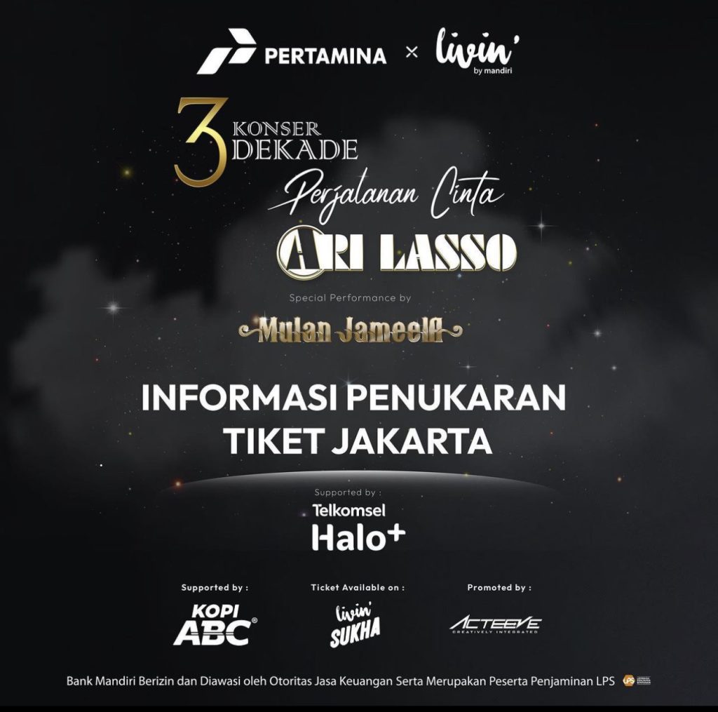 Tajuk Konser : Pertamina x Livin’ by Mandiri – Konser 3 Dekade Pejalanan Cinta Ari Lasso