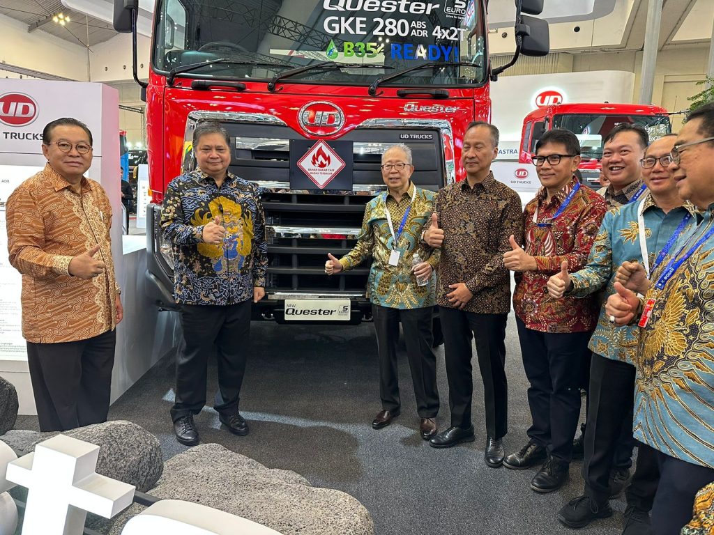 Dan pada GIIAS tahun ini, UD Trucks menampilkan 4 kendaraan Euro5 dengan model andalannya yaitu tractor 6×4 bertenaga 350hp dari mesin handal GH8E 8 liter. Model ini diluncurkan hari ini sebagai proposal untuk mendukung pengoperasian yang efisien untuk aplikasi pengangkutan jarak jauh dan berat. Semua model Quester akan terus mendukung inisiatif pemerintah dalam menggunakan Biofuel B35.