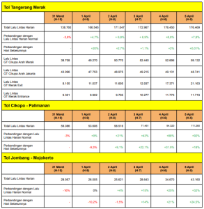 imbauan yang ditujukan untuk para pemudik. Salah satunya adalah mengimbau pengguna jalan untuk memastikan kesiapan sebelum berangkat, mulai dari kondisi pengemudi, kendaraan, hingga yang tak kalah penting memastikan saldo e-toll cukup untuk mencegah terjadinya kemacetan akibat pengemudi yang kekurangan saldo e-toll di gerbang tol. “Melalui berbagai media, Astra Infra terus mengimbau pemudik untuk memastikan saldo e-toll terisi cukup sampai destinasi tujuan demi menghindari terjadinya antrean dan kepadatan di gerbang tol,” ujar Group Chief Operating Officer Astra Infra, Billy Perkasa Kadar. Untuk mengantisipasi hal ini, Astra Infra membuat rangkuman estimasi tarif tol golongan I yang dapat disimak pemudik yang mengarah ke Jawa. Bagi yang akan menempuh perjalanan laut ke Pulau Sumatra dari Pelabuhan Merak, tarif tol yang diestimasikan adalah sebesar Rp61.500 via Astra Infra Toll Road Tangerang–Merak. Sedangkan jika pergi ke wisata Pantai Anyer, saldo e-toll yang perlu dipersiapkan adalah sekitar Rp52.500. Untuk perjalanan ke Cirebon, estimasi tarif tol yang dibutuhkan sebesar Rp146.000 via Astra Infra Toll Road Cikopo–Palimanan. Bergeser ke Jawa Tengah, pengemudi harus mempersiapkan saldo e-toll sekitar Rp427.000 untuk sampai di Semarang, dan sekitar Rp522.000 untuk sampai di Solo. Jika sampai Surabaya, artinya saldo e-toll yang perlu dipersiapkan adalah sekitar Rp832.000 via Astra Infra Toll Road Jombang–Mojokerto. Untuk mengurangi potensi kepadatan di gerbang tol, Astra Infra mengimbau pemudik untuk merencanakan perjalanan dengan cerdas, menyiapkan saldo e-toll dan melebihkan 20-30 persen dari biaya yang diestimasikan. Tak lupa, keselamatan berkendara juga patut diperhatikan seperti menjaga batas aman, serta beristirahat di rest area atau di luar jalan tol jika lelah, mengantuk, atau telah berkendara selama 4 jam berturut-turut.